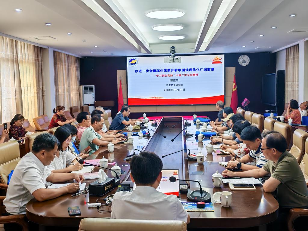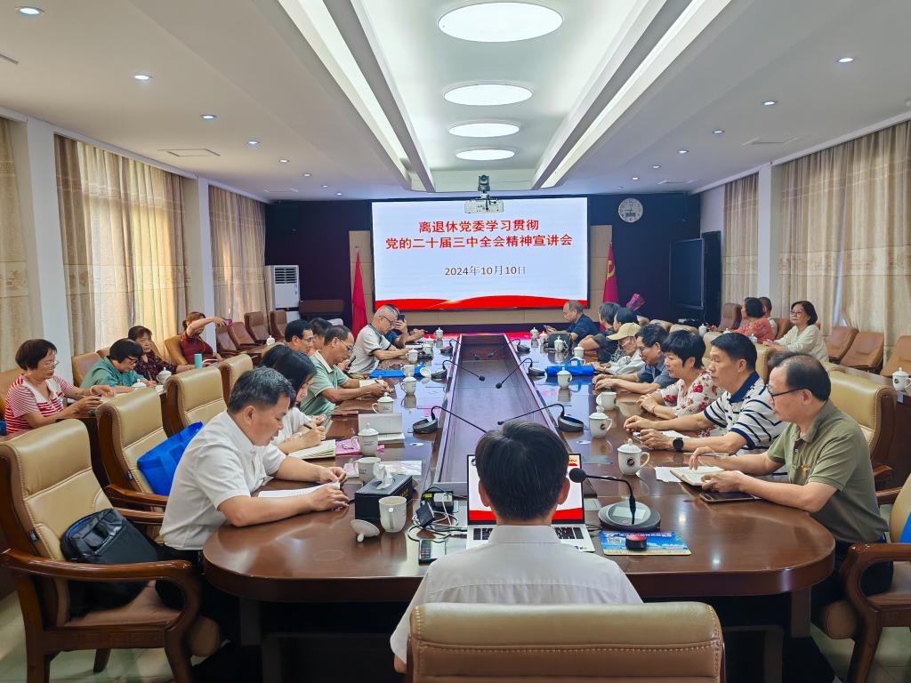 为深入学习贯彻党的二十届三中全会精神,引导广大离退休党员切实把思想和行动统一到全会精神上来,10月10日,离退休党委在霞山校区第一会议室举办学习贯彻党的二十届三中全会精神宣讲会。会议由离退休党委书记许国炯主持,学校党委理论宣讲团成员、马克思主义学院院长曹望华教授作学习辅导报告。离退休党委委员、纪委委员、党支部书记及支委委员共34人参加会议。